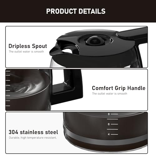 π΅π¦π¨π£ππ₯ππ’π₯ π ππ§ππ₯πππ: Our DCC-2200 coffee pot replacement is made of high hardness borosilicate thickened glass, which does not contain bisphenol A, is not easily broken, and has high heat resistance, resulting in stronger fracture resistance the black lid and handle are made of food grade abs plastic, with high hardness, very sturdy, smooth surface.