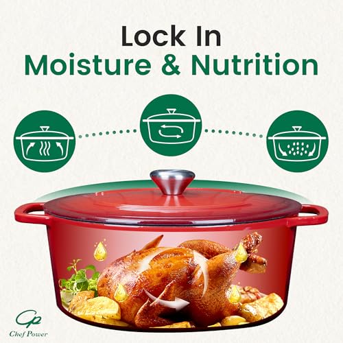 Chef Power Dutch Oven Pot with Lid 6QT, Enameled Cast Iron Dutch Oven for Bread Baking, Braising, Stews, Roasting, Oven Safe Dutch Ovens, Gradient Red