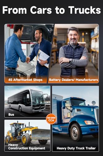 Professional-Grade Yet User-Friendly – Ideal for battery manufacturers/dealers, 4S shops, specialized garages, skilled technicians/ mechanics, DIYers, car owners and heavy construction equipment and heavy duty truck trailer, the BT705 suits 24V vehicles like trucks and buses, as well as 12V vehicles like cars, motorcycles, boats, and mowers. Its easy-to-read display and advanced conductance testing deliver precise, reliable results for all users.