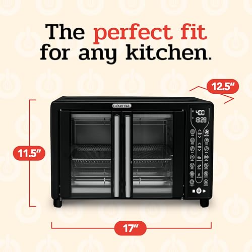 Gourmia Toaster Oven Air Fryer Combo 17 cooking presets 1700W french door digital air fryer oven 24L capacity accessories, convection rack, baking pan tray recipe book GTF7460,Large,Black