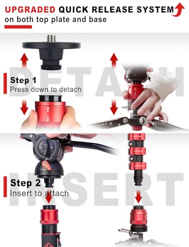 ⭐【Stable Lengthened Monopod Feet】: with lengthened feet, the base diameter is about 13.4″ when fully open, is more stable and is competent enough to work in different envirenment. Adjustable damping on base resulting in more smooth and stable pan and tilt.