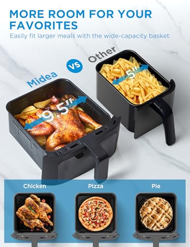 8 IN 1 VERSATILITY: Midea air fry has 8 preset menus: air fry, grill,dehydrate, bake, roast, broil, reheat and toast. This would be the only 1 versatile appliance you wish to have in kitchen!