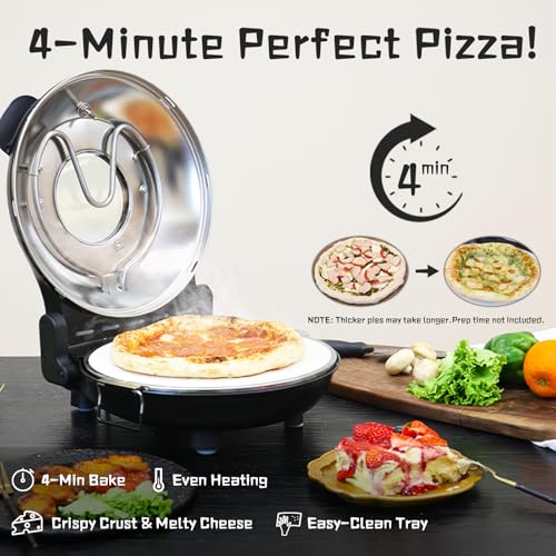 Stone Pizza Oven, 12” Indoor Electric Pizza Maker, 1200W Countertop Pizza Maker Machine with Dual Temp Control, Crispy Crust Pizzas in Minutes, Black
