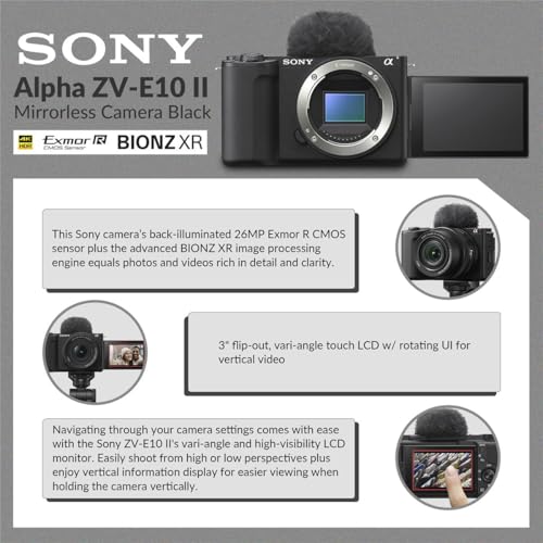 Alpha ZV-E10 II Mirrorless Camera Bundle with 64GB Memory Card, Shoulder Bag