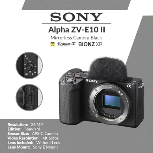 SONY ALPHA ZV-E10 II MIRRORLESS CAMERA BUNDLE INCLUDES: Battery | Strap | Screen | Adapter | Cap | 64GB Memory Card | Shoulder Bag