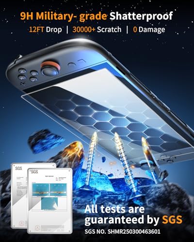【9H Military-grade Shatterproof】 Made by 9H tempered glass and double tempering time, the switch 2 accessories protect the screen even from 12FT height drops perfectly. After 3000+ scratches tested by 9H sharp pencil, no marks remain on the protector.