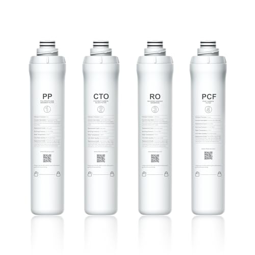 COMPREHENSIVE FILTRATION KIT: The 4-Pack Replacement Filter Set for the RO100ROPOT consists of a Polypropylene (PP) filter, Coconut Shell Activated Carbon (CTO) filter, and Post Carbon Filter (PCF), complemented by a high-efficiency Reverse Osmosis (RO) membrane. This combination ensures effective removal of more than a few contaminants and enhances the taste of your water.