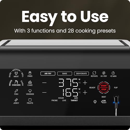 CHEFMAN ExacTemp™ 12 Quart 5-in-1 Air Fryer with Integrated Smart Cooking Thermometer, 28 Touchscreen Presets, Rotisserie, Dehydrator, Bake, XL Convection Oven with Auto Shutoff, Black