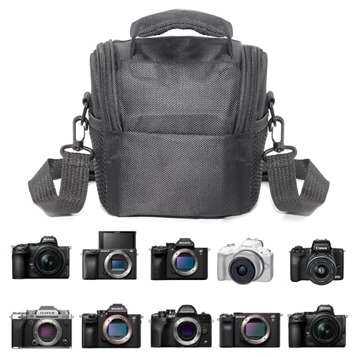 Compact Camera Bag for DSLR/SLR/Mirrorless – Shockproof Shoulder Case with Buffer Sponge for Nikon, Canon, Sony, Pentax, Olympus, Panasonic, Samsung – Black