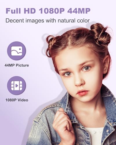 High Clarity 1080P & 44MP to Capture Memories- The digital camera features 2024 Newest CMOS Image Sensor and 5-Axis Stabilization, delivering crisp Full HD 1080P videos and 44MP Photos. No difficult setup, kids and starters can easily operate it and achieve surprise image quality, ideal for cultivating their interest in photography and recording the happy moments at parties, holidays, trips and any small adventure.