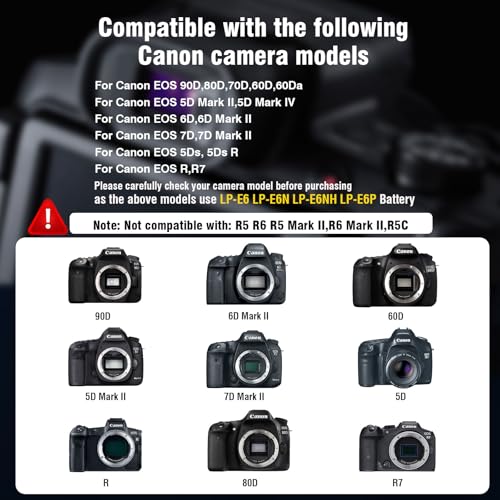 Versatile Compatibility: This LP-E6N DC Coupler power adapter is designed to be compatible with a diverse range of Canon EOS R R5 R6 R7,80D 70D 60D 90D,5D Mark II III IV,6D 7D,6D Mark II,7D Mark II,60Da 5Ds 5Ds R Cameras, among others. It serves as a versatile accessory for avid Canon photographers, ensuring broad compatibility with a variety of camera models.Incompatible: R5C, R5, R6 Mark II, 5D Mark III.Check your model first.