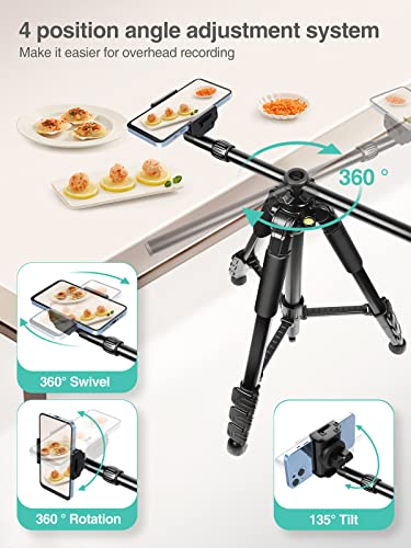 Elitehood iPhone Tripod for Overhead Video Recording [Heavy Duty & Ultra-Stable], 25in Horizontal Long Extendable Boom, 360° Rotation iPhone Tripod Stand with Remote, Vertical 71″ Tall Phone Stand