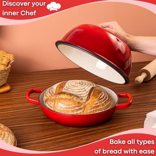 Enamelled Cast Iron Dutch Oven Pot – Dutch Oven For Sourdough Bread Baking – Cast Iron Bread Pot – Red, 6 Quarts, 22cm – by Nuovva
