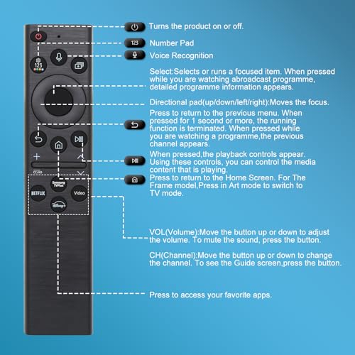 for Samsung Remote Control for Smart Tv with Voice Control, for Samsung TV Remote Control Replacement, for Frame Tv Remote Smasung Crystal Neo LED 4K Ultra HD TVs(No Solar) 1-Year Warranty.