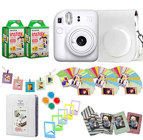Fujifilm Instax Mini 12 Instant Camera + Pro Design Accessory Bundle with Protective Case, Magnetic Frames, Album, Frames Design Kit (40 Sheets) (Clay White)