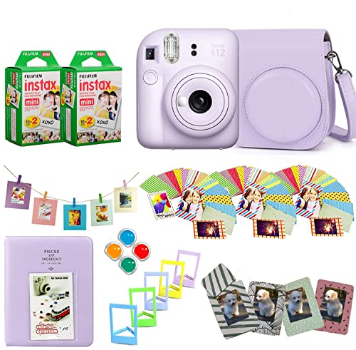 NEW FUJIFILM MINI 12 features a newly designed body with automatically adjusting settings for even brighter photos. BUILT-IN SELFIE MIRROR allows you to perfectly set up your selfies. There is no need for attaching a close-up lens. Simply extend the lens barrel out. AUTOMATIC EXPOSURE – The Mini 12 will automatically select the perfect shutter speed in any environment. Mini 12 captures bright backgrounds and bright subjects even in low light settings. DRESS UP YOUR PHOTOS – Included design bundle includes 60 skin stick-on sticker frames, 10 pastel paper hanging frames, 5 plastic desk frames and 5 magnetic frames. BUNDLE INCLUDES camera, 40 sheets of film, matching case, 4 piece filter set (blue, red, green, yellow), 5 magnetic frames, album, 10 piece hanging frame set, 5 piece desk frame set and 60 sticker frames to add spice and character to your photos