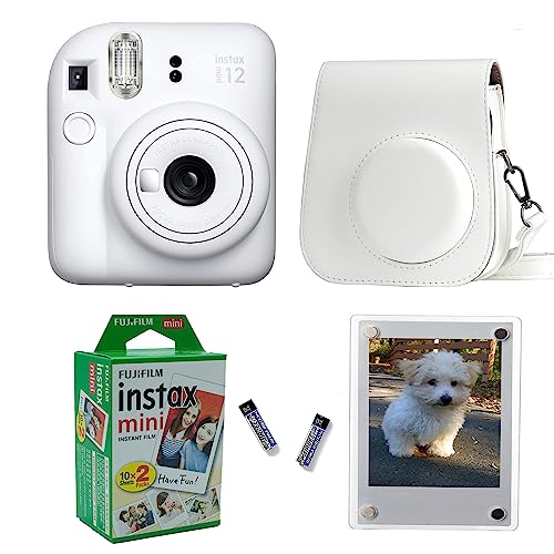 Fujifilm Instax Mini 12 Instant Camera + Pro Design Protective Case & Magnetic Lucite Frames, 20 Sheets (Clay White)