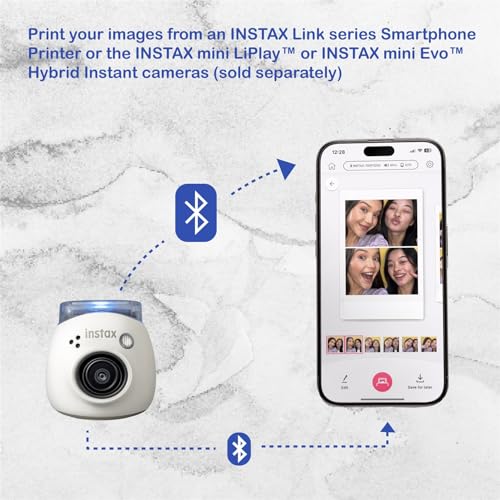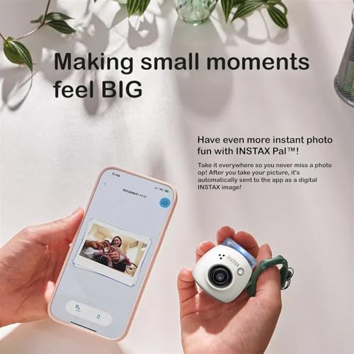 The new Instax Pal Digital Camera is perfect for capturing every moment. Take it everywhere so you never miss a photo op! Each picture is automatically sent to the app as a digital INSTAX image. Connect with an INSTAX Link series Smartphone Printer or an INSTAX mini LiPlay or Mini Evo Hybrid Instant camera to print your photos. Compact and pocket-friendly, it’s easy to carry anywhere. The free INSTAX Pal Smartphone App lets you record up to 5 personalized pre-shutter phrases or sounds. Ideal for vacations, parties, sleepovers, weddings, and more, it’s designed to create lasting memories. This bundle includes a camera, 20-sheet FUJIFILM films, a 32GB micro SD card with adapter, a multiuse detachable ring, a USB-C charging cable, a 1-year limited warranty, and a cleaning cloth. Enjoy the simplicity and fun of capturing, storing, and printing your memories with Instax Pal.