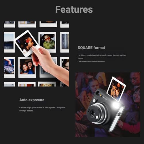 Selfie Mirror Integrated on Lens – Built-In Flash and Auto Exposure Mode. Fujifilm Instax Square SQ40 Camera BUNDLE is Colorful and really Cool.