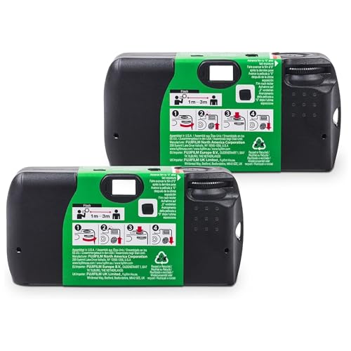 A convenient one-time-use disposable camera for both indoor and outdoor shooting situations, the QuickSnap Flash 400 from FUJIFILM is loaded with a roll of 27-exposure Fujicolor Superia X-TRA 400 color negative film for bright, vivid results in a variety of lighting conditions. The compact, portable camera design incorporates a fixed-focus, wide-angle lens and a matching optical viewfinder for making accurate compositions. Additionally, to suit working in low lighting, a built-in flash with a 10′ range is featured, and offers automatic recharging, continuous flash operation, and manual on/off control.