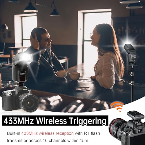 GODOX TT520III Camera Flash,433MHZ GN33 Manual Flash Built-in Wireless Receiver,RT Transmitter,S1/S2 Mode Speedlight for Canon Nikon Sony Olympus Pentax Fuji DSLR Cameras,Single-Contact Hotshoe