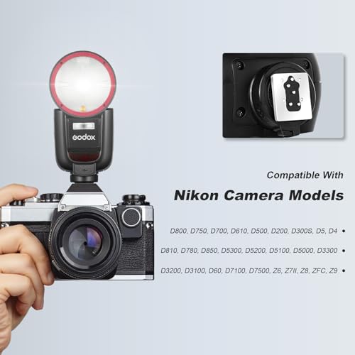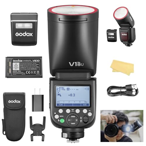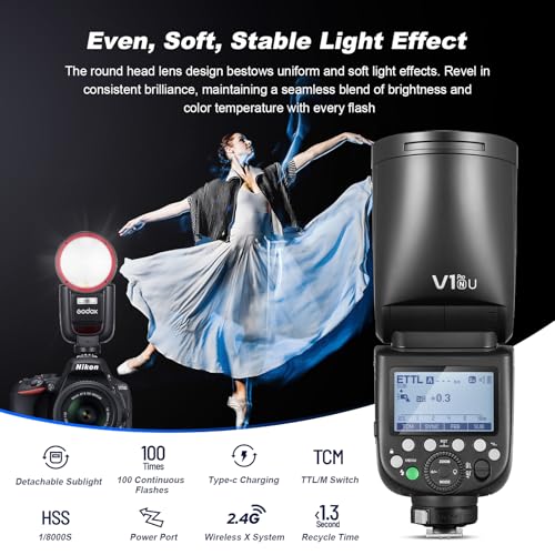 Godox V1 PRO N USA Version Flash for Nikon Camera with External Flash SU-1 2980mAh 76W Battery TTL 1/8000s HSS 1.3s Recycle Time 2.4G Wireless HSS 500 Full Power Flashes