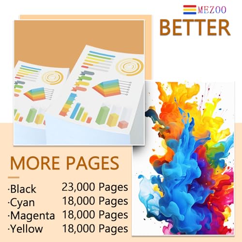 High Page yield: 23,000 pages per GPR58 Black toner , 18,000 pages per GPR58 Cyan Magenta Yellow toner at 5 percent Coverage of A4 letter.