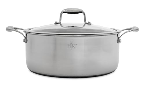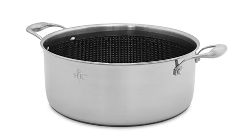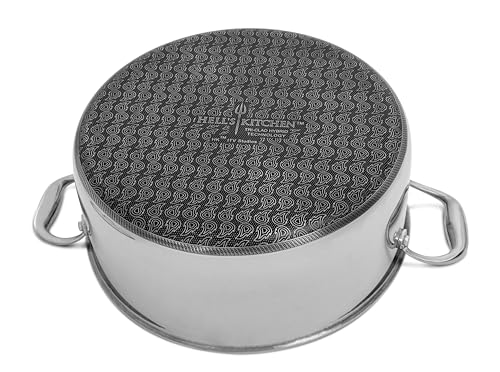 Hell’s Kitchen Hybrid 7.5 Qt Pot and lid, Tri-Clad Stainless Steel and Nonstick Ceramic, PFAS Free, no PFOA, no PTFE, no Teflon, Non Toxic Cookware, Metal Utensil Safe, All Cooktops and Oven Safe