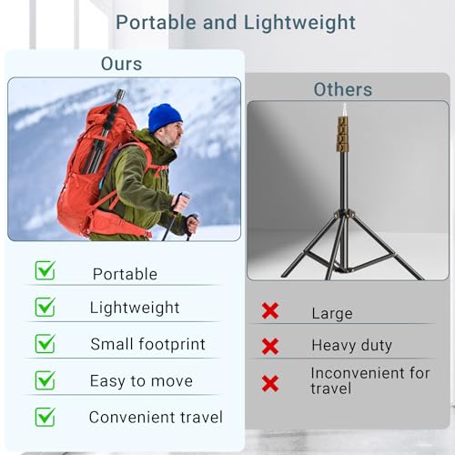 【Easy to use & Lightweight】 The lightweight tripod is easy to use. It can be quickly set up and adjusted without tools. Weighing about 545g/1.2lb (similar to two phones), it’s easy to carry whether traveling or recording in the studio or outdoors
