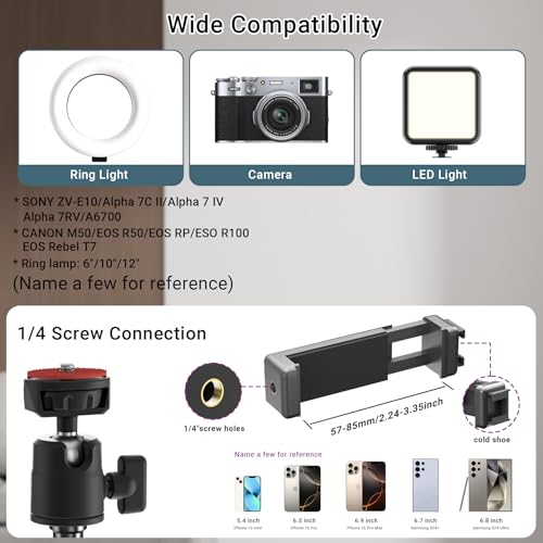 【Any Angle&Phone Holder】The included 360° ball head means that you can rotate the light or camera position at any angle. Moreover, the mobile phone holder can easily enable you to use your smartphone for photography or video recording