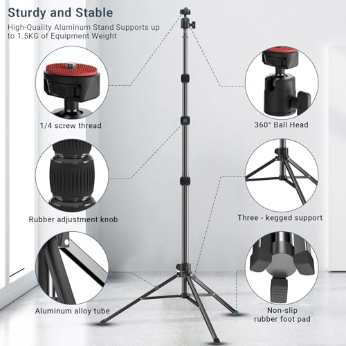 Lightweight Tripod for Ring Light Phone Camera, Extendable 5.74 Feet Aluminum Photography Light Stand with Ball Head, Protable Stands for TikTok YouTube Video Recording