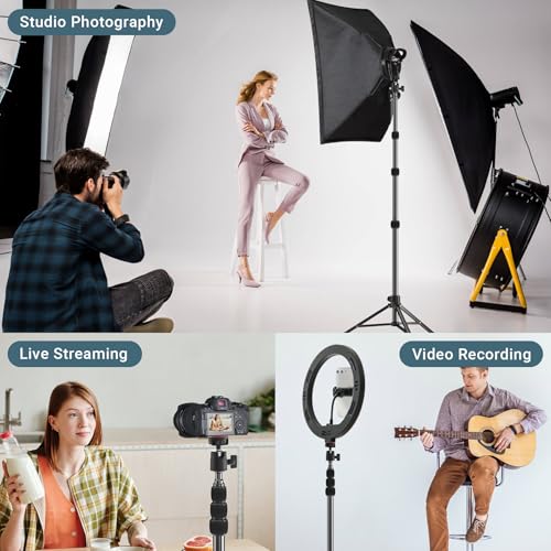 【Wide Compatibility&1/4 Screw】The tripod stand for ring light is suitable for a wide variety of photography and video equipment with 1/4 screw thread. It may be used for strobe lights, flashes, speedlites, cameras, studios, video recordings, webcams and more