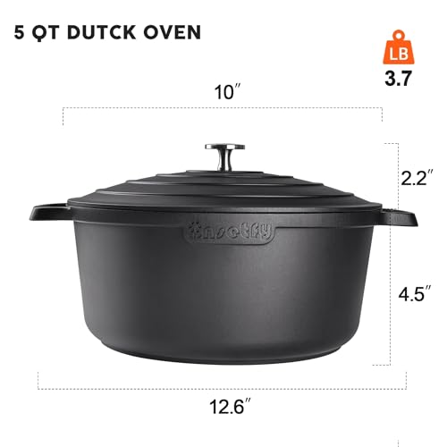 Nonstick and Easy to Clean-The dutch oven interior has a smooth finish, preventing it from sticking or staining. It is dishwasher protected without rust problem, to prolong the performance, handwash is highly advisable.