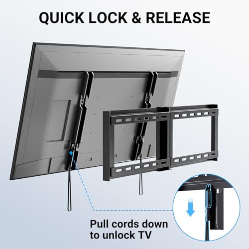 High quality steel construction ensures safety. This wall mount TV bracket has high standards. It has been tested to hold 4 times the weight it’s rated to based on UL standards so you can rest assured that it will hold the weight of your TV. It also comes with a locking mechanism with quick release which easily secures your TV to the wall.