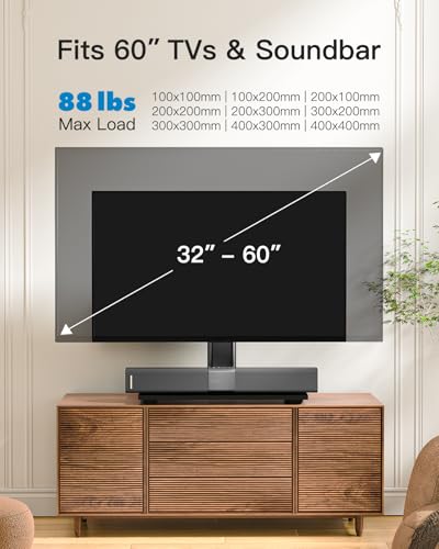 【Universal TV Stand Holds 32″-60″ TVs 】The TV stand mount fits 32″ – 60″ LCD/LED/OLED Flat/Curved screen or monitor hold up to 88lbs, compatible faceplate fits VESA 100X100mm, 200X100mm, 200X200mm, 300X200mm, 300X300mm , 400X300mm , 400X400mm.
