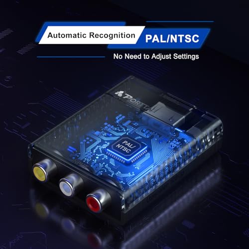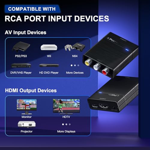 Portta AV to HDMI Converter 1080P, RCA to HDMI Converter, Composite CVBS to Audio Video Adapter, Support PAL/NTSC, Compatible with VHS/VCR/PS3/N64/Wii/STB/Xbox/Blue-Ray/DVD Players