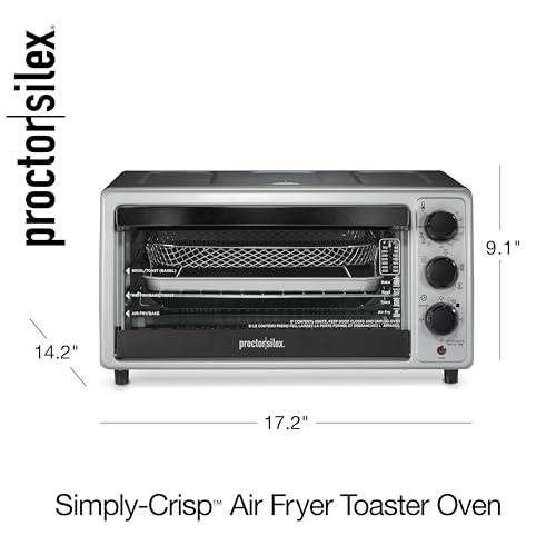 The Proctor Silex® Simply-Crisp™ Air Fryer Toaster Oven creates lightly browned, crispy foods with Simply-Crisp™ air frying functionality.* Its large, 6 slice capacity and versatile settings assist you to air fry, bake, broil or toast plenty of foods.