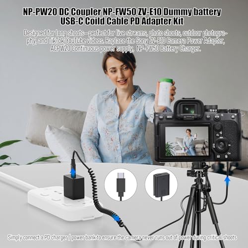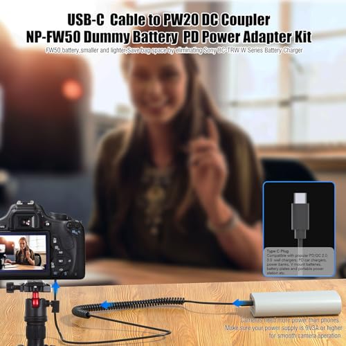 PW20 DC Coupler Replace ACK-PW20 ACPower Adapter USB C to NP-FW50 Dummy Battery with Coild PD Cord Compatible withSony A6400/A6000/A5100/A7 II/A7R II/A5000/ A6300/A6100/ ZVE10/ RX10IV…