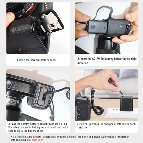 Continuous Power Supply: Use the PW20 dummy battery power adapter PD Cable to provide uninterrupted power to your camera. This eliminates the need for the Sony BC-QZ1 Battery Charger and frequent battery changes, enabling extended shooting sessions.