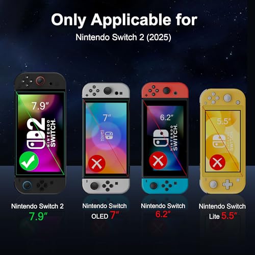 QHOHQ Screen Protector for Nintendo Switch 2 [7.9 Inch] Model 2025, [Military Grade Shatterproof], Top 9H+ Tempered Glass, HD Clear, Full Coverage, Ultra Durable [3 Pack]