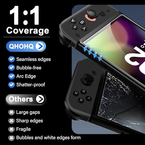 ✅ 【Military-Grade Shatterproof Protection】QHOHQ Tempered Glass Screen Protector, exclusively engineered for Nintendo Switch 2, utilizes ultra-premium 9H+ hardness tempered glass. Rigorously tested through 200-pound impact resistance, 10-foot drop survival, 10,000-cycle scratch endurance, and 99% light transmittance verification, it meets international military-grade certification standards. Even during intense gaming sessions, this shield guarantees your screen remains pristine and intact.