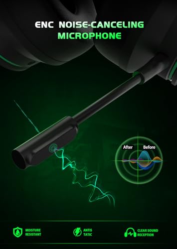 RYR Wireless Gaming Headset for Xbox Series X|S, Xbox One, PS5, PS4, Mac, Bluetooth 5.3, 3D Surround Sound, Rotatable Earmuffs, Gaming Headphones with Noise Canceling Microphones-Blackgreen