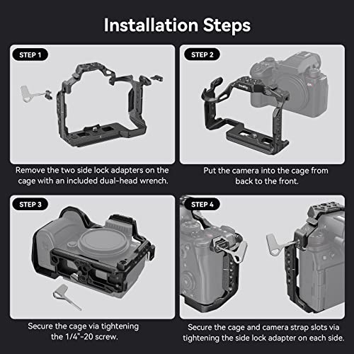 More Dedicate Details: The cage also features strap holes on both sides and the bottom, which are compatible with Hand Strap [3848], Shoulder Strap [PSC2428], etc. Besides, a magnetic wrench is included for easy disassembly and assembly.