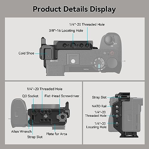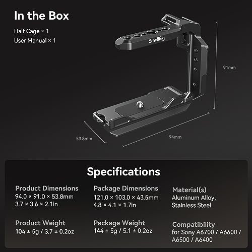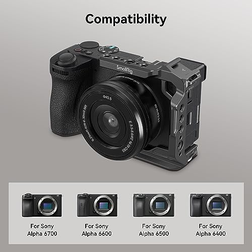 For Sony Alpha 6700 / 6600 / 6500 / 6400: SmallRig Half Cage 4337 is designed for Sony Alpha 6700 / 6600 / 6500 / 6400, which is lightweight and portable. The easy-to-use half cage gives full access to dials and buttons, with built-in cushions preventing scratches.