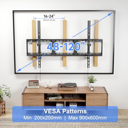 Heavy-Duty & Universal Compatibility: Supports 48-120 inch Flat/Curved TVs with max VESA 900x600mm (35.4″x23.6″) and 220 lbs weight capacity. Perfect for large and ultra-large TVs—check your TV’s VESA and weight before purchase.