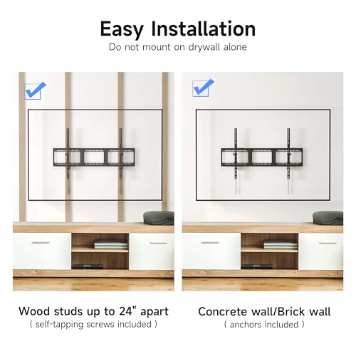 Quick & Secure Installation: Includes all hardware, bubble level, and step-by-step guide for easy mounting on wood studs (16/18/24″) or solid walls. Quick-release cords simplify TV removal.