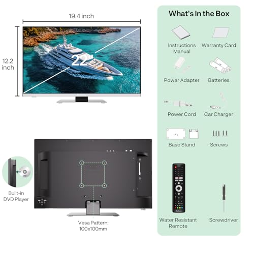 【Marine-Grade TV Durability & Wide Voltage Support】Built to withstand the elements, this TV with built-in DVD player is moisture, corrosion, and salt spray-resistant—perfect for RVs, boats, beach houses, and home use. With AC/DC compatibility and support for DC 9-32V, it adapts to your needs wherever you are.
