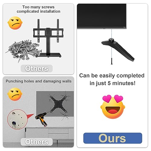 —- Can Move Freely —-Our TV stand lets you place your TV on any sturdy surface without wall mounting. Effortlessly set up your TV in your living room, bedroom, or office.