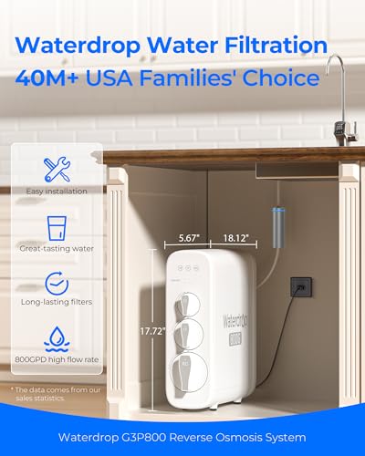 Waterdrop G3P800 Reverse Osmosis System, 800 GPD Fast Flow, NSF/ANSI 42 & 53 & 58 & 372 Certified, 3:1 Pure to Drain, Tankless Under Sink RO Water Filter System, LED Purifier, Smart Faucet