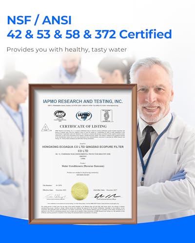 【NSF/ANSI standard 42 & 53 & 58 & 372 certified】This tankless reverse osmosis system is certified by IAPMO R&T against NSF/ANSI 58 for reduction of TDS. Also it has been tested and certified against NSF 42 & 53 to reduce chlorine, bad taste, odor and so forth. But even so, the system is certified by NSF/ANSI 372 for lead-free materials.